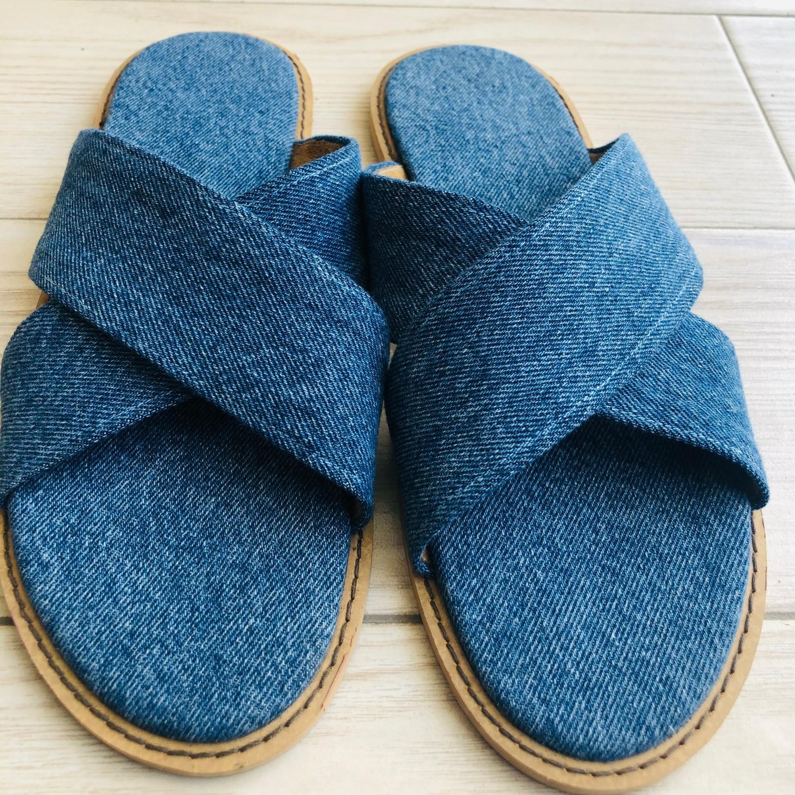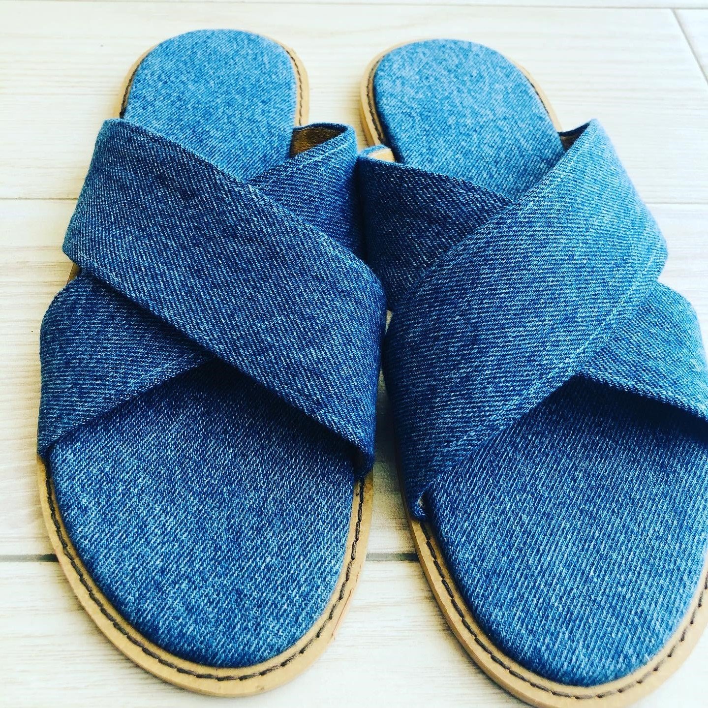 Cross Denim Slides