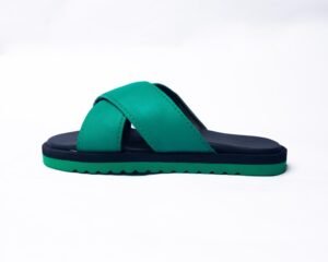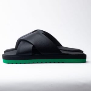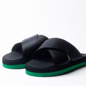 Green lower soles with black inner and black leather strap